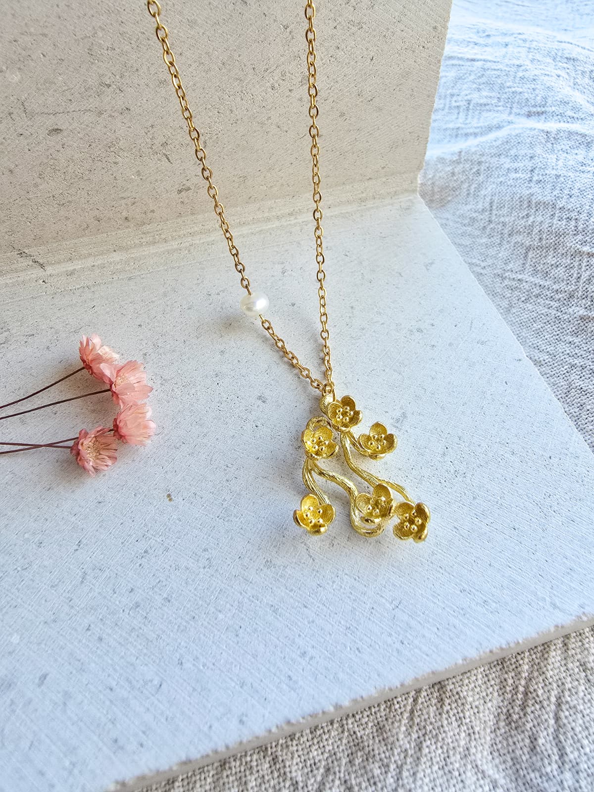 - Pendente em cobre com latão + pérola de água doce.